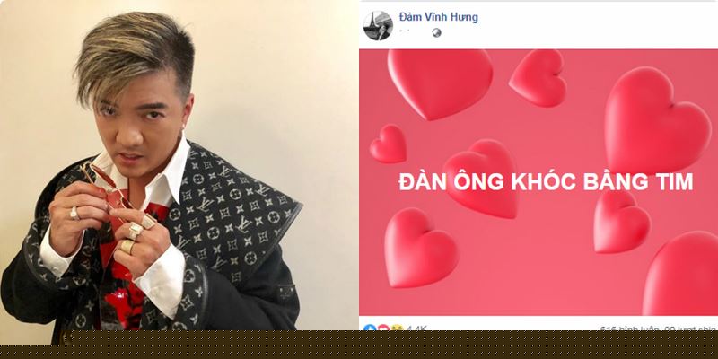 Đàm Vĩnh Hưng viết: "Đàn ông không khóc bằng tim" khiến fan phấn khích."Theo dự đoán của con là có 2 phương án: Một là ba đang có chuyện buồn hay là đang trong lúc yếu lòng cần tâm sự. Hai là ba sắp tung ra sản phẩm âm nhạc mới có tên: "Đàn ông không khóc bằng tim" - Facebooker Huỳnh Phúc băn khoăn.