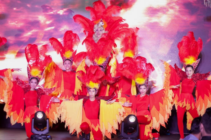 Được biết, đôi cánh ấn tượng đó đã được 10 thợ may đã mất gần 4 ngày để đính kết thủ công 1000 chiếc lông vũ ngoại nhập, 1000 viên đá swarovski tạo thành.