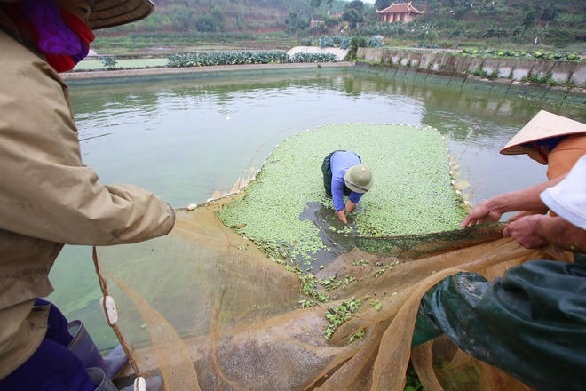 Cá chép - "phương tiện" để ông Công ông Táo về trời - đang được người dân làng Thủy Trầm (xã Tuy Lộc, Cẩm Khê, Phú Thọ) thu hoạch, bán cho thương lái khắp tỉnh thành phía Bắc.