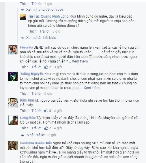 Hàng trăm bình luận đã được đăng tải thể hiện sự bức xúc của các thành viên khi về du xuân tại Yên Tử cũng bị đội ngũ trông xe tại đây chặt chém “móc túi” một cách trắng trợn.