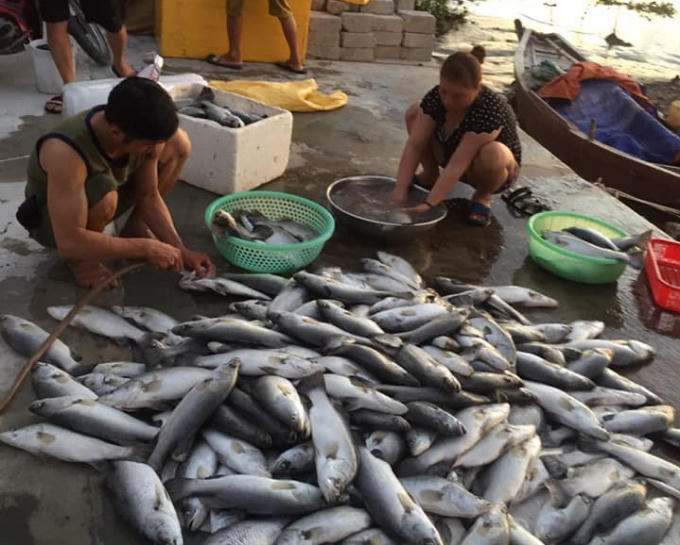 Ông Nguyễn Hữu Minh (62 tuổi, trú tại thôn Sông Hải), cho biết gia đình thả nuôi 1.000 con cá chẽm trong 4 ô lồng nhưng đều chết hết. Số cá này gia đình ông đã nuôi được gần 1 năm, cá có trọng lượng khoảng 2kg / 1 con. Không chỉ riêng gia đình ông Minh, nhiều hộ khác cá cũng chết trắng không còn một con. Đây là loại cá có giá bán khá cao từ 170.000 - 180.000/ kg.