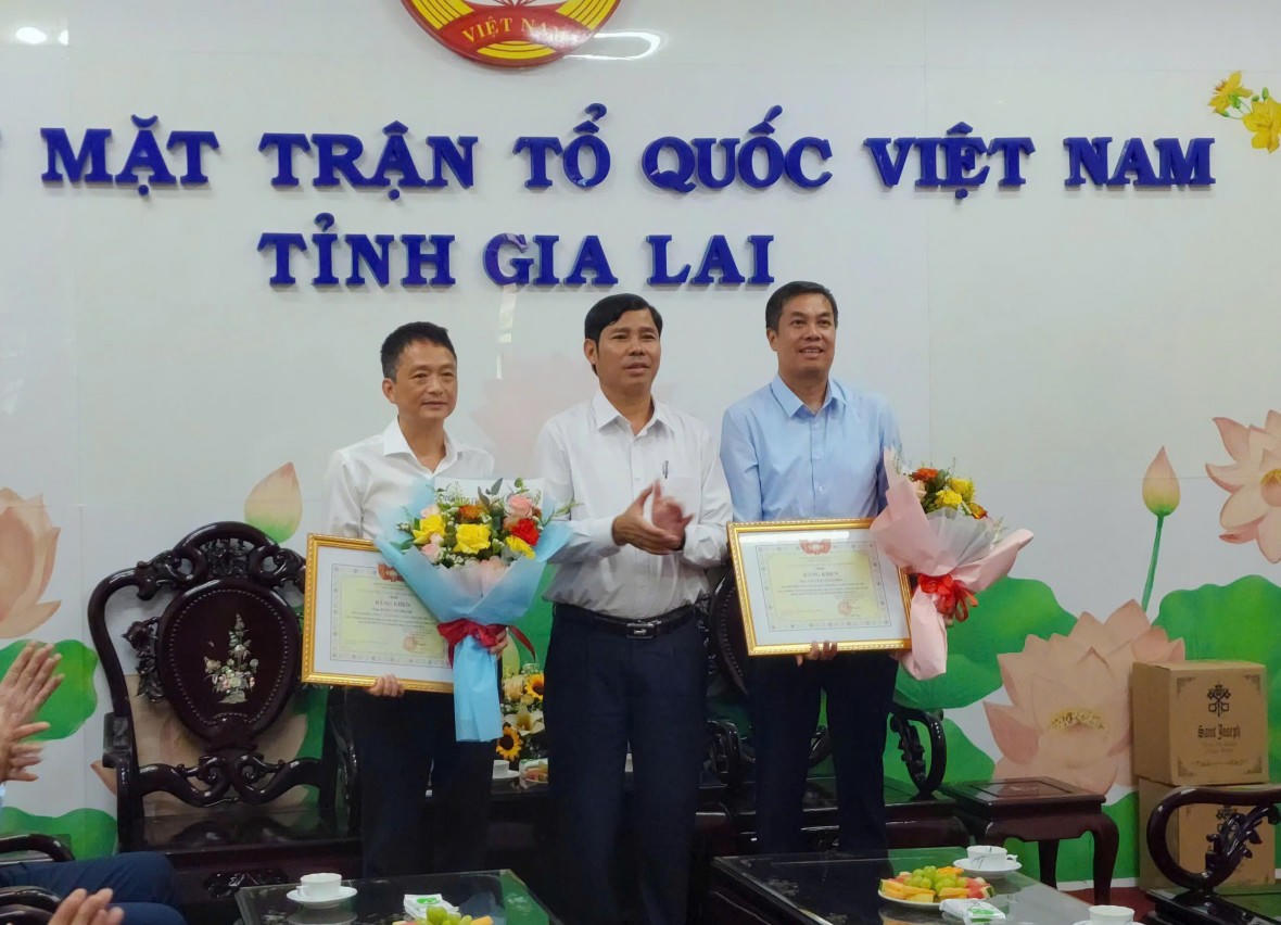 Nhân dịp này, đồng chí Lâm Hải Giang- Phó Chủ tịch UBND tỉnh Gia Lai và lãnh đạo Ủy ban Mặt trận Tổ quốc Việt Nam tỉnh Gia Lai trao Bằng khen của UBND tỉnh Bình Định (cũ) tặng Hiệp sĩ Đại Thánh Giá Gioan Baotixita Lê Đức Thịnh vì đã có thành tích xuất sắc trong phong trào thi đua “Cả nước chung tay xóa nhà tạm, nhà dột nát trong năm 2025”; Bằng khen của Ủy ban MTTQ Việt Nam tỉnh Bình Định (cũ) tặng ông Đặng Văn Thanh - Giám đốc Công ty CP Đầu tư xây dựng Việt Phú An, ông Nguyễn Văn Cường- Giám đốc Bệnh viện Nam học và hiếm muộn Hà Nội vì có thành tích trong tham gia các chương trình an sinh xã hội.
