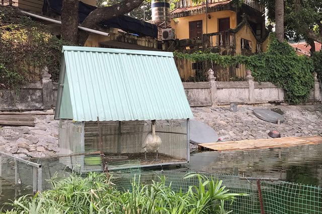 Ngay khi phát hiện đàn thiên nga có dấu hiệu đẻ trứng, Công ty Thoát nước Hà Nội đã làm ổ bằng rơm đặt trong chuồng sắt trên mặt hồ phía gần đường Nguyễn Du.