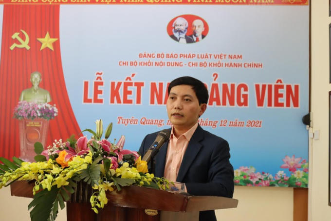 Ông Vinh nhấn mạnh việc được đứng trong hàng ngũ của Đảng Cộng sản Việt Nam là niềm vinh dự lớn lao, là một bước phát triển mới của cá nhân các Đảng viên mới, đồng thời cũng thể hiện sự trưởng thành, lớn mạnh của mỗi Đảng viên. Không những thế, là đảng viên của cơ quan ngôn luận của Bộ Tư pháp nên mỗi đảng viên cần nắm chắc, hiểu biết và phải là chiến sỹ tiên phong tuyên truyền chủ trương, chính sách của Đảng, đấu tranh chống tiêu cực, phản bác những luận điệu sai trái của các thế lực thù địch.