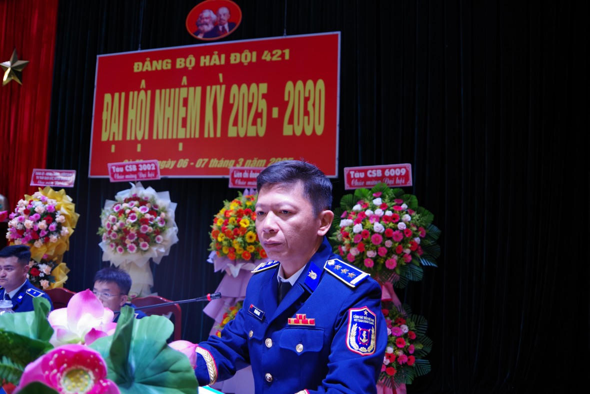 Phát biểu chỉ đạo Đại hội, Thượng tá Vũ Đình Ngà, Ủy viên Ban Thường vụ Đảng ủy, Phó Chính ủy Hải đoàn 42 ghi nhận, biểu dương và chúc mừng những thành tích mà Đảng bộ Hải đội 421 đã đạt được trong nhiệm kỳ 2020 - 2025.