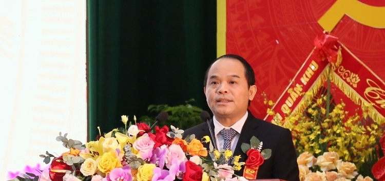 Đồng chí Nguyễn Quốc Đoàn, Bí thư Tỉnh ủy đọc diễn văn Kỷ niệm 90 năm Ngày thành lập Đảng bộ tỉnh Lạng Sơn.