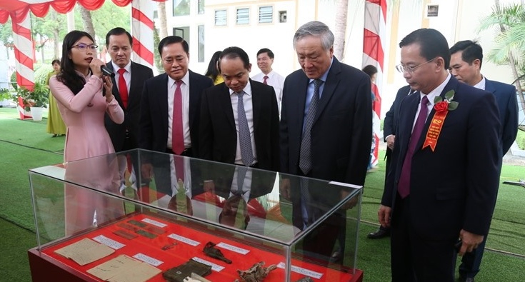 Các đại biểu tham quan trưng bày triển lãm về 90 năm Ngày truyền thống Đảng bộ tỉnh Lạng Sơn.