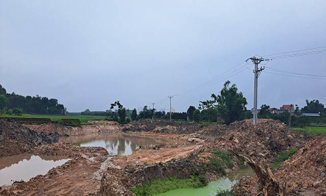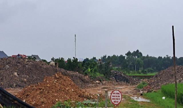 Máy xúc và xe tải hoạt động trong khu vực khai thác đất tại thôn Chằm xã Thượng Lan.
