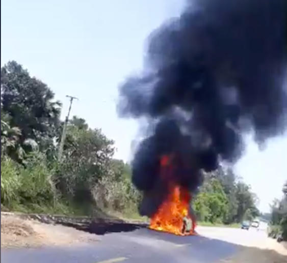 Phát hiện sự việc, người dân địa phương đã đến dập lửa và hỗ trợ anh tài xế thoát ra khỏi xe. Nạn nhân bị bỏng nặng, được chuyển tới bệnh viện cấp cứu sau đó. Chiếc xe gặp nạn bị lửa bao trùm, khói đen cuộn cao hơn chục mét. Vài chục phút sau, người dân khống chế được ngọn lửa, song xe đã cháy trơ khung.