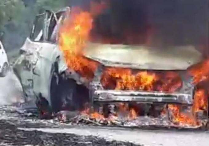 Chiều ngày 17/5, anh Trần Văn Hà (54 tuổi, trú huyện Anh Sơn, Nghệ An) điều khiển chiếc ô tô hiệu Santafe lưu thông trên đường Hồ Chí Minh khi xe đi tới địa phận xã Thanh Thịnh, huyện Thanh Chương, Nghệ An), thì bất ngờ ngọn lửa bùng lên dữ dội từ gầm xe. Sau đó ngọn lửa nhanh chóng bao trùm chiếc xe.