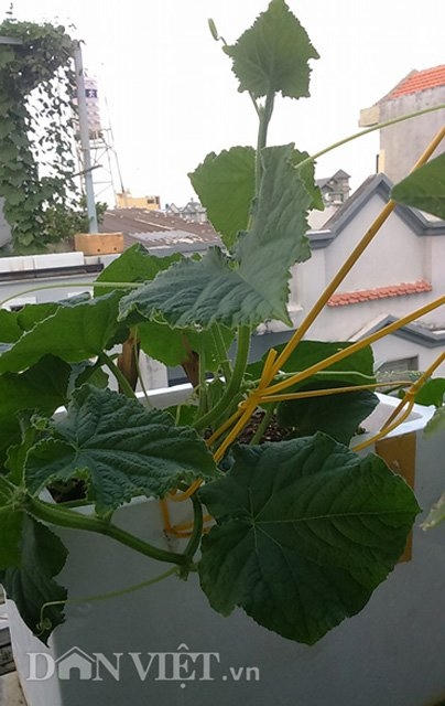 Chia sẻ về những kỷ niệm đáng nhớ với khu vườn nhỏ nhắn xinh xắn này, chị Dung kể: "Lần đầu tiên hai vợ chồng mình cùng trồng dưa leo, cây lá cành tốt um nhưng không hiểu sao không có quả. Thậm chí, có một chậu con mà trồng đến 6 cây, hai vợ chồng cứ thay nhau ra nhìn cái, vào ngắm một cái… Cứ vậy đến hơn 3 tháng sau vẫn không thấy ra quả nào nên đành phải nhổ bỏ. Cái cảm giác chờ đợi, rồi hí hửng “hóng” của hai vợ chồng đến là buồn cười".