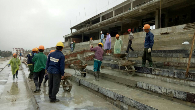 Sau hơn 20 ngày “đóng băng” hoàn toàn công tác thi công, bài toán về đảm bảo tiến độ càng cam go. Khi lũ đã rút, bất chấp thời tiết mưa phùn giá rét, gần 400 công nhân FLC Faros đã liên tục thi công ba ca/ngày. Sơ bộ trong 4 tháng thi công, chỉ có một tháng đội ngũ FLC Faros thi công hai ca, còn lại 2 tháng rưỡi làm cả ba ca, ông Hải ước tính.