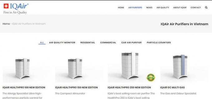Website giới thiệu sản phẩm của IqAir tại Việt Nam (chụp màn hình).