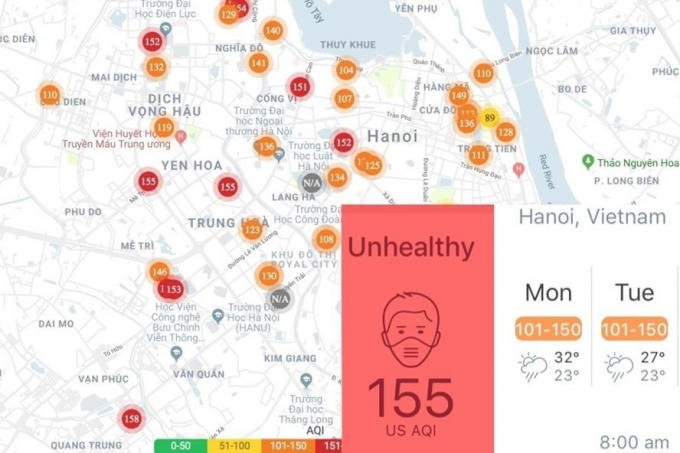 Những chỉ số về chất lượng không khí Hà Nội trong những ngày qua gây lo lắng cho nhiều người dân Thủ đô (ảnh chụp màn hình/LĐO).