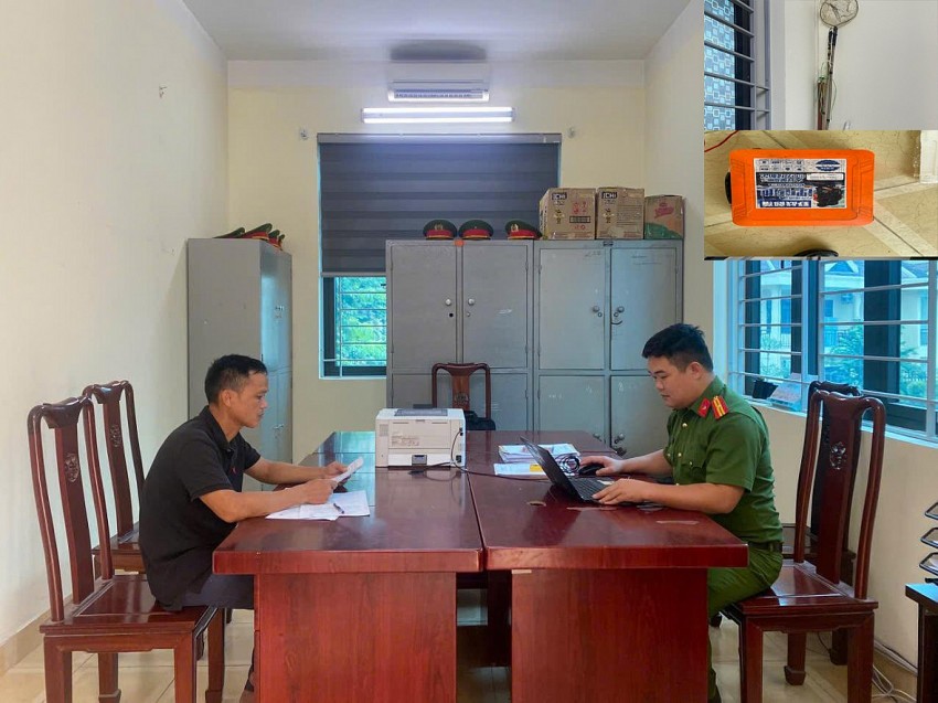 | Đặng Văn Điệp cùng vật chứng tại cơ quan công an. (Ảnh: Công an Tuyên Quang). |