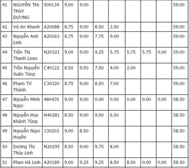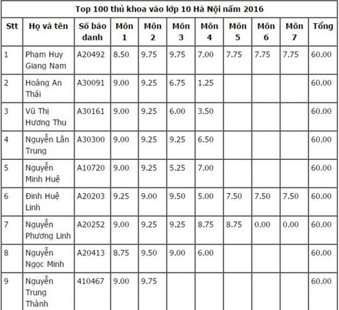 Những thí sinh nằm trong Top thủ khoa đầu vào lớp 10 năm nay có điểm dao động từ 58-60 điểm. Năm nay, toàn TP Hà Nội có 9 thí sinh đạt 60 điểm, 10 thí sinh đạt 59,5 điểm.