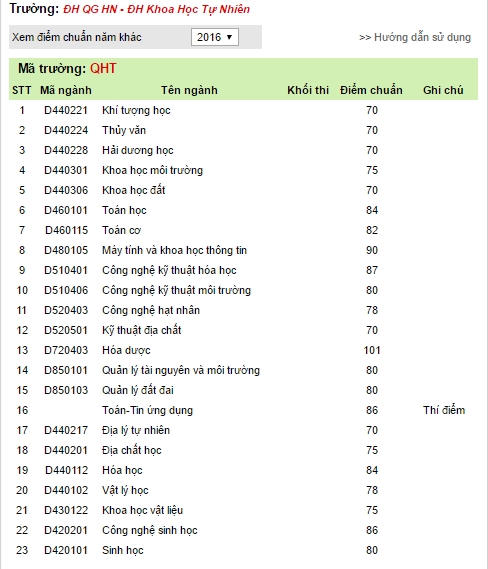 Đại Học Khoa Học Tự Nhiên trực thuộc ĐHQGHN chính thức công bố điểm chuẩn năm 2016.