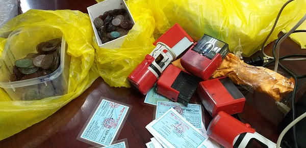 Những con dấu giả được sản xuất để hợp thức hóa giấy tờ xe nhập lậu (ảnh CAHT).