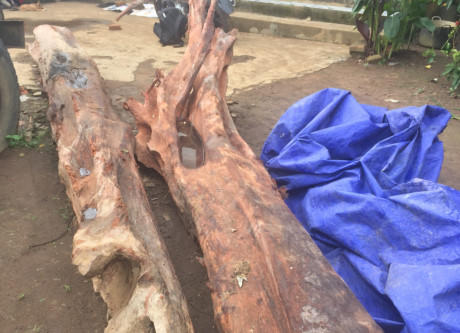 Sau khi phát hiện có gỗ trắc, thợ “xăm cây” đã thỏa thuận và phối hợp với chủ rẫy là ông Rơ Châm Pyp tiến hành đào cây gỗ lên khỏi lớp đất sâu hơn 1m. Do cây gỗ quá dài, khó vận chuyển, ông Pyp đã cưa làm đôi và chở về nhà.