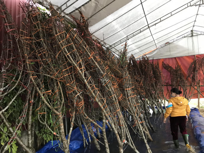 Những cửa hàng dã chiến được dựng lên để bảo quản đào và phục vụ người mua.