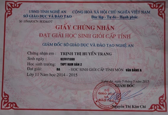 Cái khổ, cái khó đeo bám dai dẳng nên chị em Trang đều có ý thức học thật giỏi để sau này có công việc làm ổn định. Đêm đêm, bên tủ sách và chiếc bàn học xộc xệch được ông ngoại (là bảo vệ trường học gần đó) xin cho, hai chị em Trang miệt mài học tập. Những tấm giấy khen, danh hiệu học sinh giỏi tỉnh, học sinh giỏi toàn diện là phần thưởng xứng đáng dành cho nỗ lực học tập của cô học trò nghèo. Thế nhưng khi có kết quả thi với 24,5 điểm xét tuyển khối C (Văn 8,5 điểm, Sử, Địa mỗi môn 8 điểm) thì giảng đường đại học trở nên xa vời hơn khi gia đình quá khó khăn, khó có thể giúp Trang theo học.