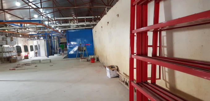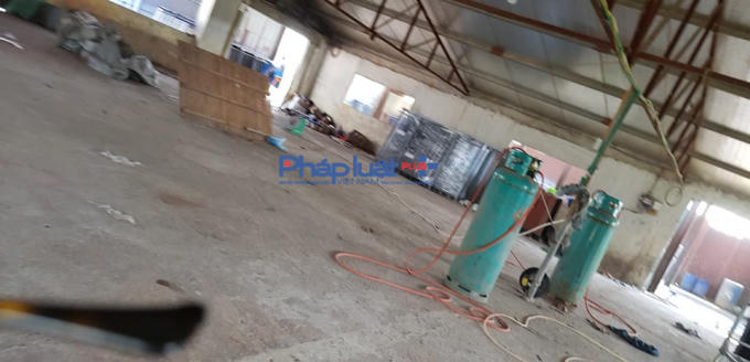 Nhiều nhà xưởng khung thép hàng trăm mét vuông quây tôn kín mít, quạt thông gió chạy ro ro. Bên trong, đầy đủ thiết bị máy công nghiệp, sơn xi tĩnh điện..., như một xưởng công nghiệp sản xuất cơ khí.