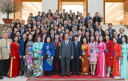 Chiều 26/1 tại Hà Nội, Thủ tướng Nguyễn Xuân Phúc đã có cuộc gặp gỡ đoàn kiều bào tiêu biểu gồm hơn 100 người đến từ 34 quốc gia, đại diện cho khoảng 4,5 triệu kiều bào trên khắp thế giới về dự Chương trình Xuân quê hương 2019.