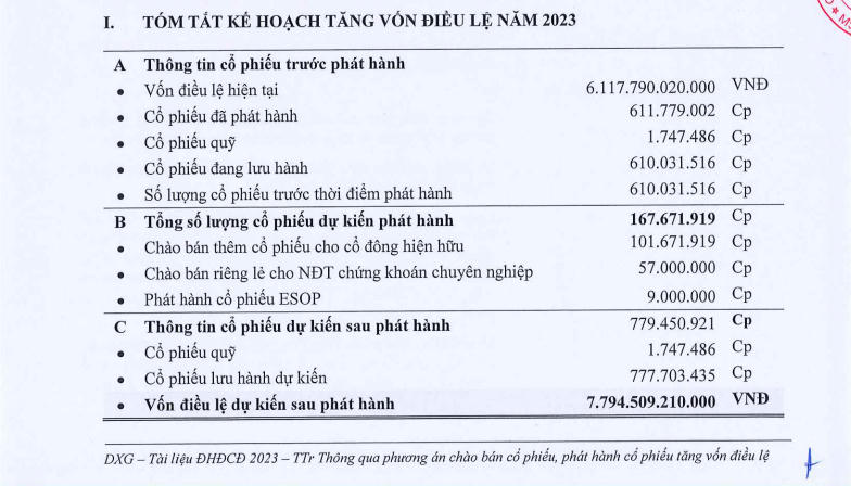 Bản tóm tắt kế hoạch tăng vốn điều lệ của DXG.