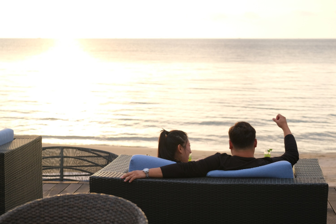 Như mọi du khách trong đoàn, gần như tất cả các buổi chiều từ lúc đặt chân đến đảo ngọc, anh Hyeong và người bạn thân đều có mặt trên bãi biển để ngắm ánh hoàng hôn tuyệt sắc dát vàng mặt biển, xa xa bóng dừa thanh bình và hàng dương in bên bờ cát trải dài mênh mông. Không gian khoáng đạt, thơ mộng của khu nghỉ dưỡng càng thêm hấp dẫn khi Phú Quốc bước vào mùa đẹp nhất năm và thật sự mang đến những giờ phút tận hưởng thanh bình, riêng tư. Chuyến du lịch đầu tiên đến Việt Nam của anh Hyeong thật sự trọn vẹn với đầy đủ sự lãng mạn, riêng tư, trải nghiệm mới lạ, các món ăn đặc biệt ngon và dĩ nhiên không thể thiếu sự an toàn đi đôi với dịch vụ cao cấp.
