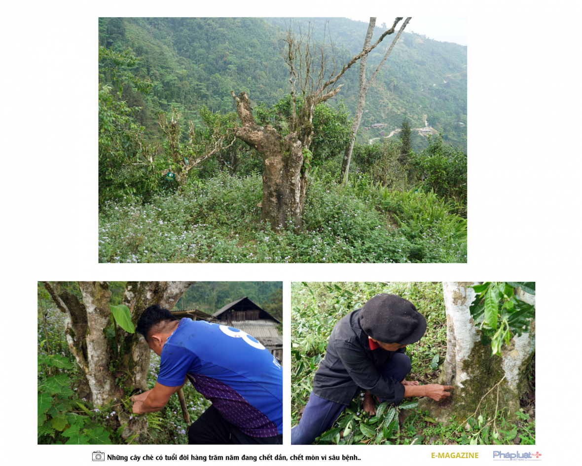 “Cả vườn chè nhà tôi tính ra cũng khoảng gần 400 cây, tuổi thọ ít cũng 300 năm tuổi, được quy hoạch là chè hữu cơ, hàng năm không phun bất kỳ loại thuốc bảo vệ thực vật. Sạch thì có sạch đấy, nhưng buồn nỗi nhiều cây chè cứ mắc bệnh rồi chết dần. Có cây thì khô cành, cây bị sâu đục thân, vùng này nhiều nhà bị như thế, dân không có cách nào để chữa trị cho chè”, ông Hiang rầu rĩ nói.