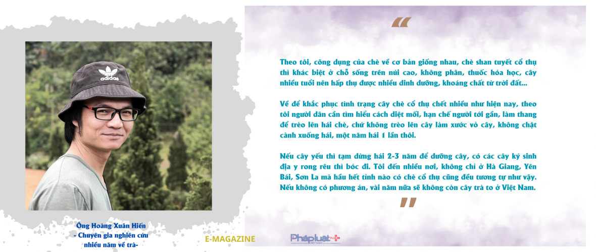Bước chân rời những triền núi với bạt ngàn chè cổ thụ, chúng tôi đau đáu nghĩ về lời chia sẻ như trút hết nỗi lòng của bà Triệu Thị Phin (SN 1956) ở thôn Phia Chang, xã Sơn Phú: “Với người dân chúng tôi, cây chè không đơn thuần là một loài cây nữa mà là những người bạn từ thuở ấu thơ, chúng chứng kiến và cùng chúng tôi lớn lên, khi chúng chết người dân chúng tôi cũng đau lắm”.