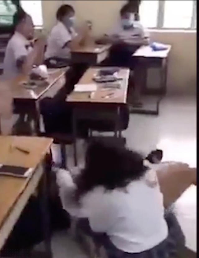 Sự việc diễn ra ngay giữa lớp học, giữa lúc hầu như tất cả học sinh đều có mặt trong lớp. Không phải là hình ảnh tức giận, điên loạn, cấu xé, chửi bới - phong cách quen thuộc khi đánh lộn - mà chị "đại" ra tay cách dửng dưng, lạnh lùng, không chút chùn tay.