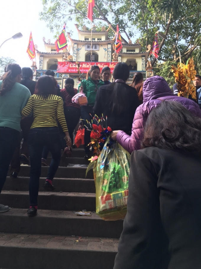 Tuy nhiên, ai cũng có thể dễ dàng nhìn thấy trong giữa đám đông người cũng lễ, có rất nhiều người cúng thuê len lỏi, chiếm chỗ của du khách hành hương.