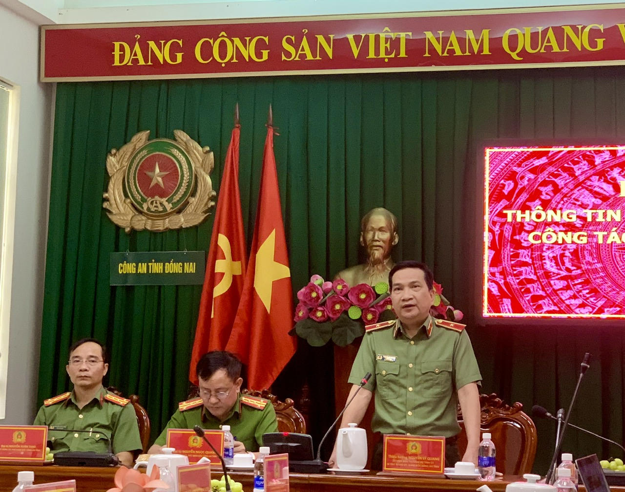 Thiếu tướng Nguyễn Sỹ Quang, Giám đốc Công an tỉnh Đồng Nai phát biểu và trả lời các câu hỏi của phóng viên về công tác đảm bảo an ninh trật tự nổi bật trong năm 2022.