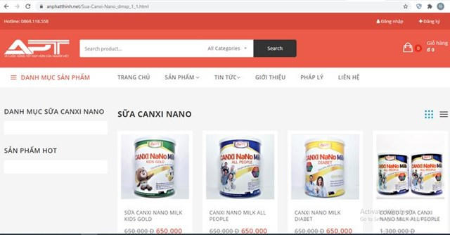 Nhân viên Công ty An Phát Thịnh tung hô đây là một sàn thương mại điện tử lớn nhất Việt Nam, có các dòng sản phẩm chính gồm: sữa canxi nano - nguyên liệu nhập từ New Zealand, đông trùng hạ thảo, đồ dùng thiết yếu... Tất cả các sản phẩm trên đều đã được cấp phép lưu hành.