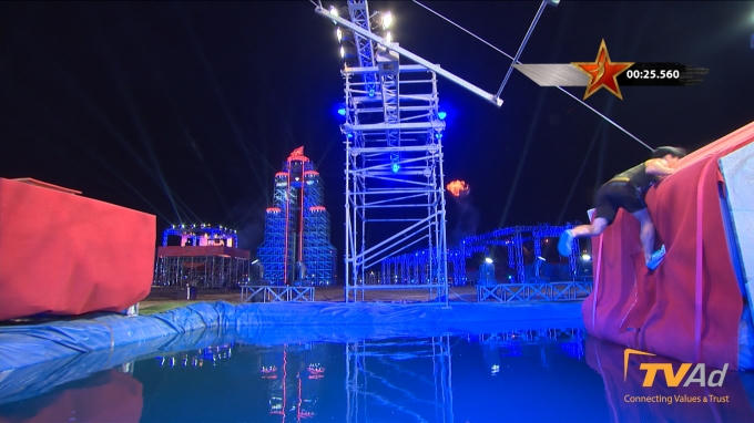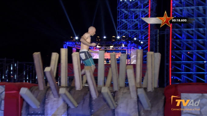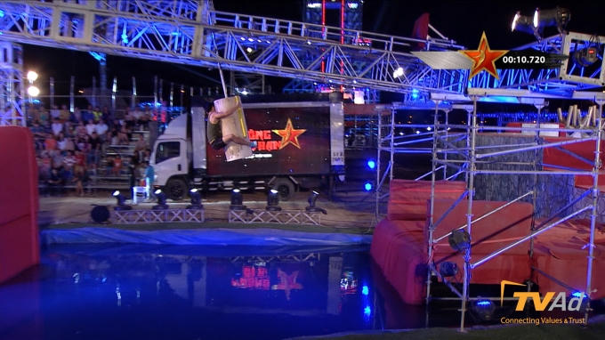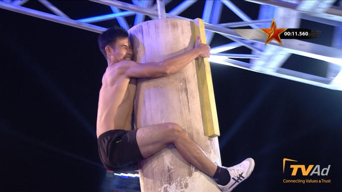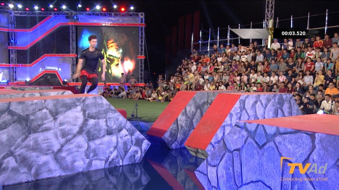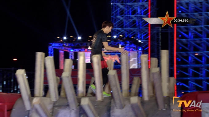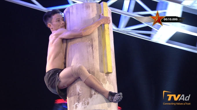 Không hề thua kém các thí sinh đến từ nước ngoài, giảng viên Đại học FPT Đinh Hải Thành với những bước chạy thần tốc đã vượt qua được các thử thách của stage 1B với thời gian rất ấn tượng 46 giây 84 để ghi tên mình vào Top 10 BXH 1B.