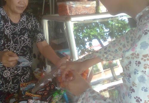 “Những món ăn vặt như miếng vi thịt bò, sâu hồ lô…giá rẻ được tẩm màu và thêm hàn the cho dai. Học sinh rất thích ăn, nhiều cháu còn bắt mẹ mua cho bằng được mới chịu”, bà chủ quán này nói.