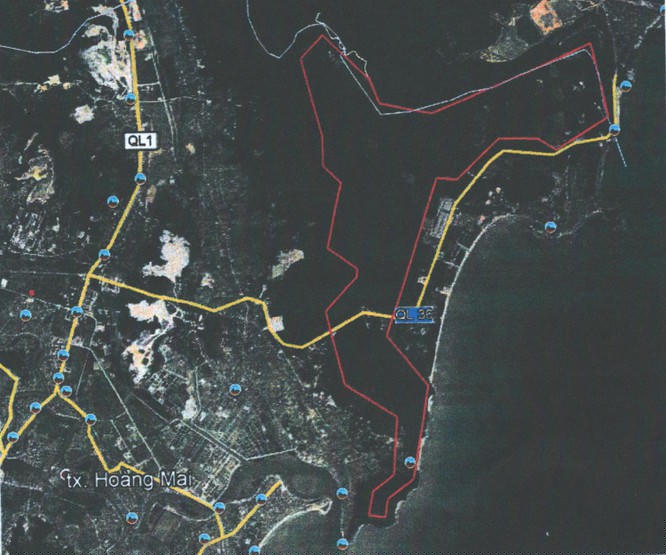 Tọa độ diện tích dự án hiển thị bằng màu đỏ (Nguồn: quynhlap.gov.vn)