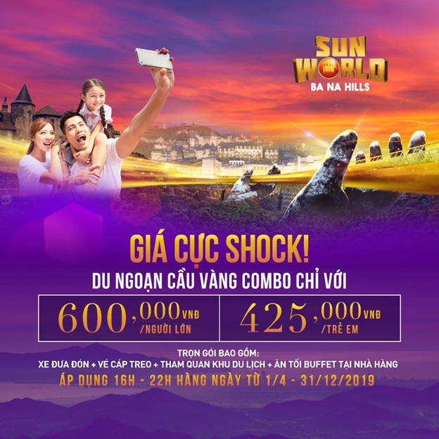 Chính thức áp dụng tới 31/12/2019, trong khung giờ từ 16h- 22h, combo này bao gồm xe bus đưa đón từ các điểm trung tâm trong nội thành Đà Nẵng lên đến khu du lịch, vé cáp treo, tham quan khu du lịch và 1 suất ăn buffet tại Beer Plaza.