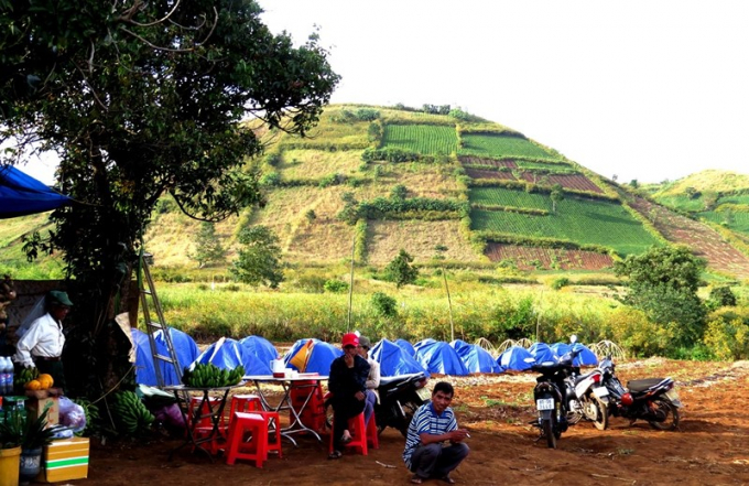 | Người dân dựng lều (bên trong trải rơm và chiếu 1,6 m) sẵn sàng đón du khách ở lại đêm |