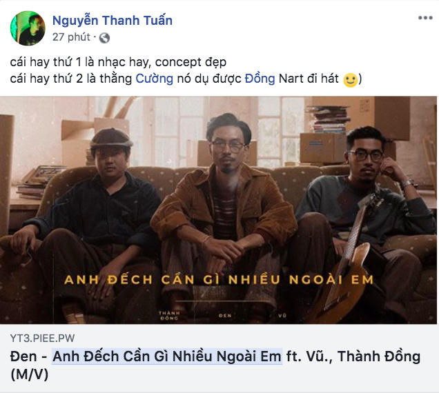 “Thật ra lúc đầu tôi chỉ định quay ca khúc này để làm kỷ niệm, với một kinh phí vô cùng nhỏ. Song, sau khi ca khúc gây hiệu ứng khiến tôi thật sự bất ngờ xen lẫn hạnh phúc. Xin cảm ơn tất cả mọi người đã luôn theo dõi và ủng hộ Đen cùng ekip”, Đen Vâu chia sẻ thêm.