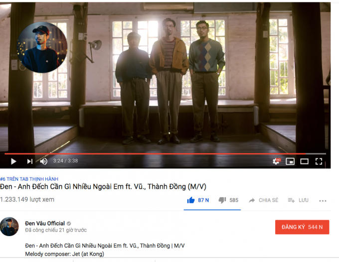 Siêu phẩm được người hâm mộ của Đen chờ đợi trong suốt thời gian qua, MV “Anh đếch cần gì nhiều ngoài em” đã chính thức ra mắt vào đúng 0h00 ngày 15/11.