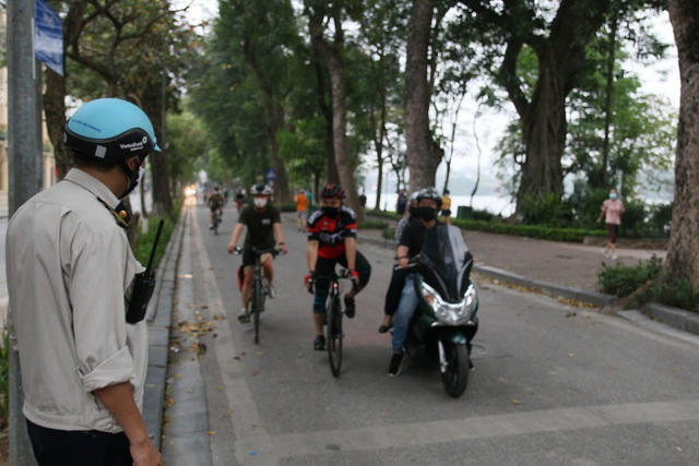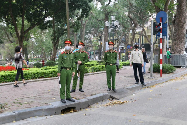 4 chốt tuyên truyền người dân đeo khẩu trang khi ra đường để phòng chống dịch Covid-19 được thành lập quanh hồ Hoàn kiếm. Các chốt được đặt ở ngã tư Tràng Tiền, Tượng đài Cảm tử, bến Lục thủy, Tượng đài Lý Thái tổ.