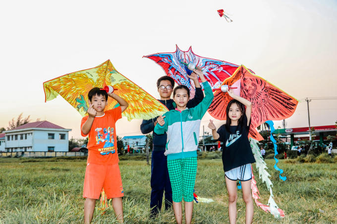 Diều no gió, tràn đầy tiếng cười của tuổi thơ.