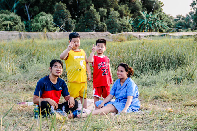Gia đình chị Uyên ở TP Biên Hòa đưa cả gia đình đến bãi đất trống thả diều sau một tuần làm việc và học tập căng thẳng. Thả diều trên những cánh đồng no gió vừa giúp giải trí, thư giãn vừa lưu lại những kỉ niệm gia đình đẹp đẽ.