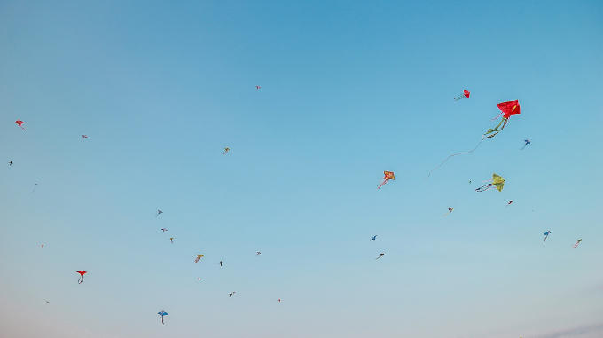 Một bầu trời đa sắc màu được tạo nên bởi những cánh diều đủ màu sắc.