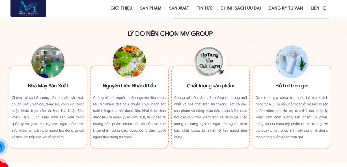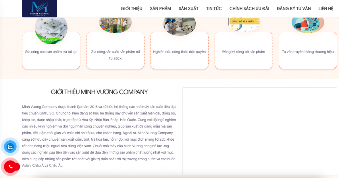 Có nhà xưởng nhưng không phải nhà máy đạt chuẩn GMP nhưng Công ty TNHH sản xuất thương mại và dịch vụ Minh Vương lại ngang nhiên quảng cáo trên website:minhvuongltd.com là đơn vị chuyên sản xuất, gia công các sản phẩm như Detox mâm xôi Clollagen, trà túi lọc Cà gai leo MV, Kombucha Detox gừng dứa, truyền trắng... trên dây chuyền công nghệ, hiện đại, đạt chuẩn GMP của Bộ Y tế có dấu hiệu lừa dối người tiêu dùng.
