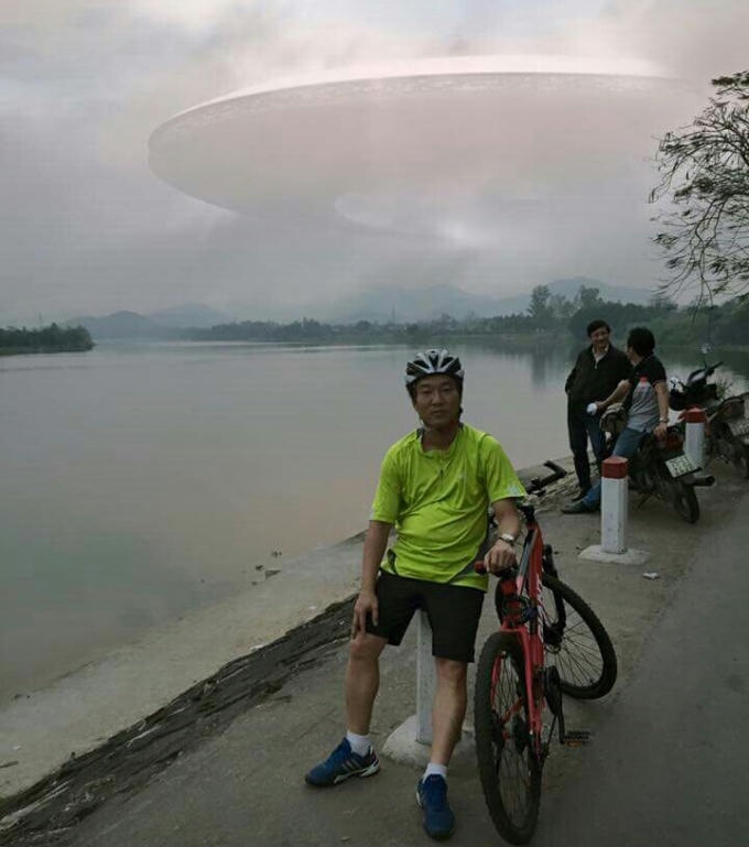 Anh Nguyễn Trung cho biết “Khi tôi đang ngồi ngắm cảnh trước chùa Thiên Mụ nhìn thấy một đám mây lớn có hình thù kỳ lạ, nên tôi chụp ảnh cho vui. Sau đó tôi nhờ một du khách chụp hộ. Khi về nhà xem lại ảnh thì phát hiện đám mây khổng lồ có hình như đĩa bay”.