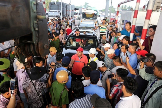 | Tụ tập, ùn tắc tại trạm BOT Cai Lậy (Tiền Giang. Ảnh: VnExpress. |