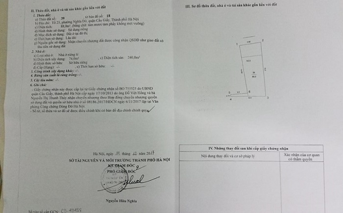 | Giấy chứng nhận QSDĐ của gia đình ông Đỗ Việt Hồng được cơ quan có thẩm quyền cấp. |